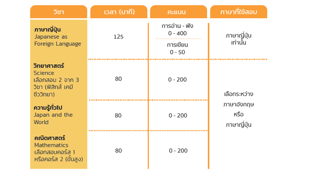 (ภาษาอังกฤษ) http://www.jasso.go.jp/en/eju/examinee/syllabus/index.html